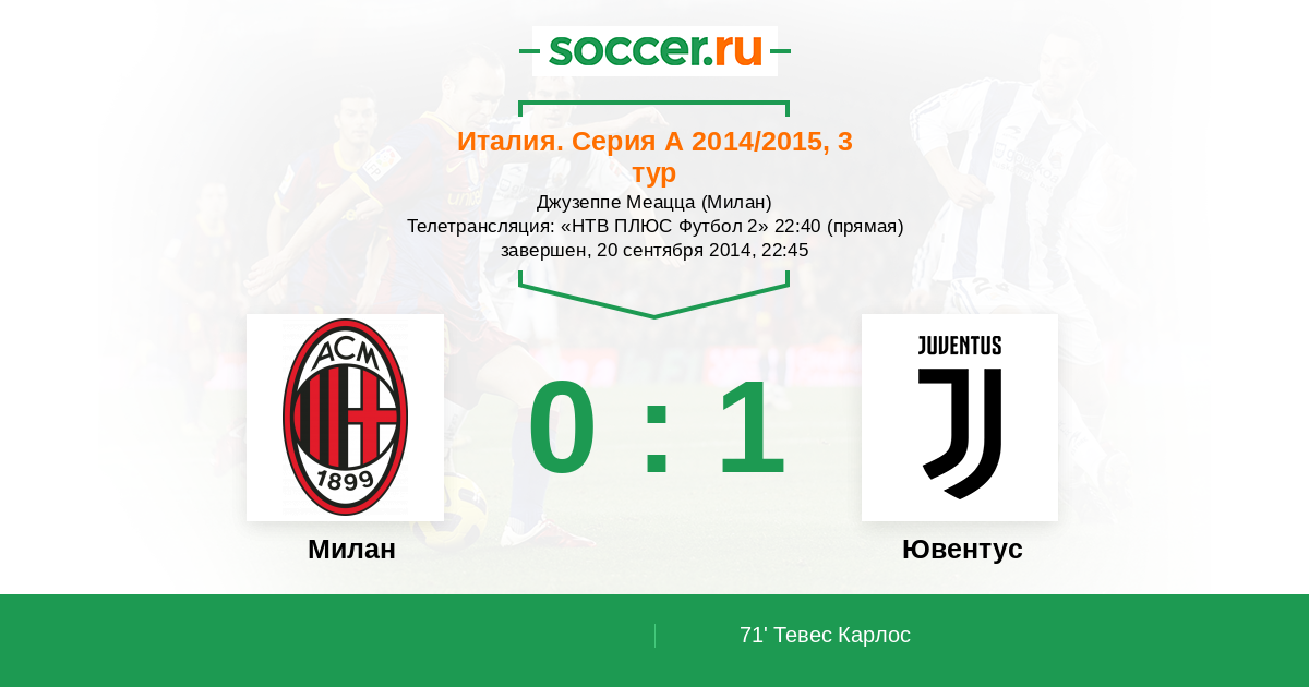 Протокол матча Милан против Ювентус
