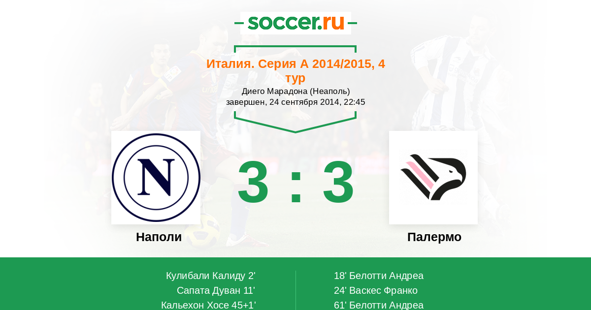 Протокол матча Наполи против Палермо