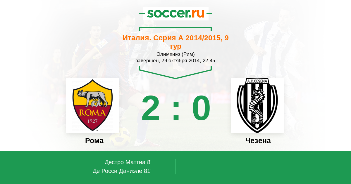 Протокол матча Рома против Чезена