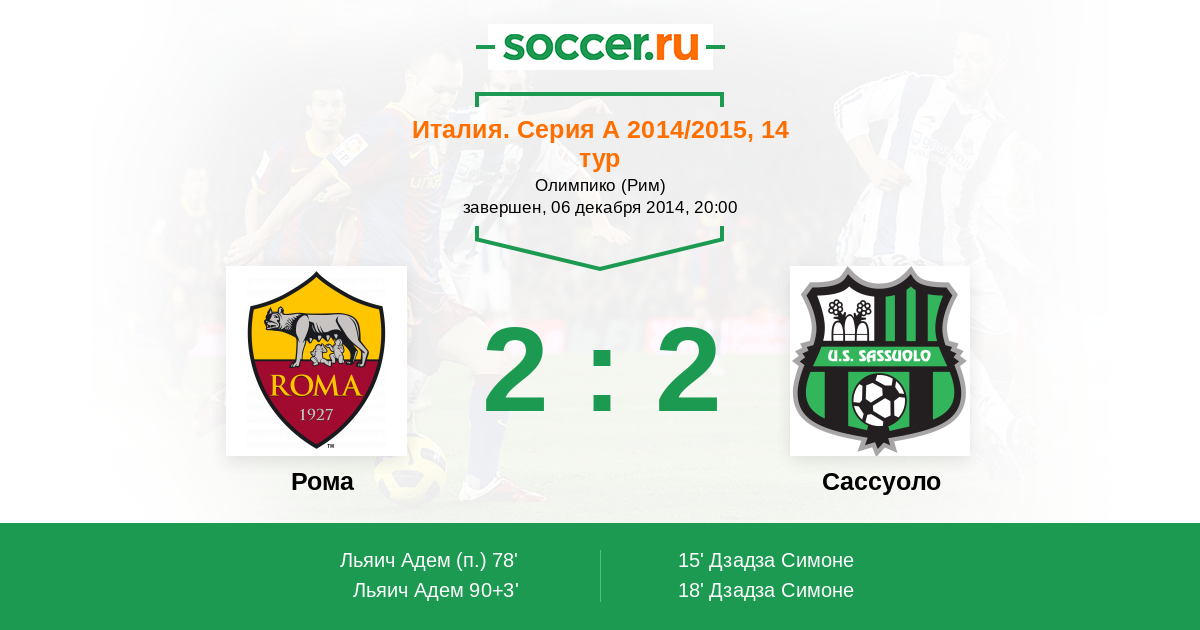 Протокол матча Рома против Сассуоло