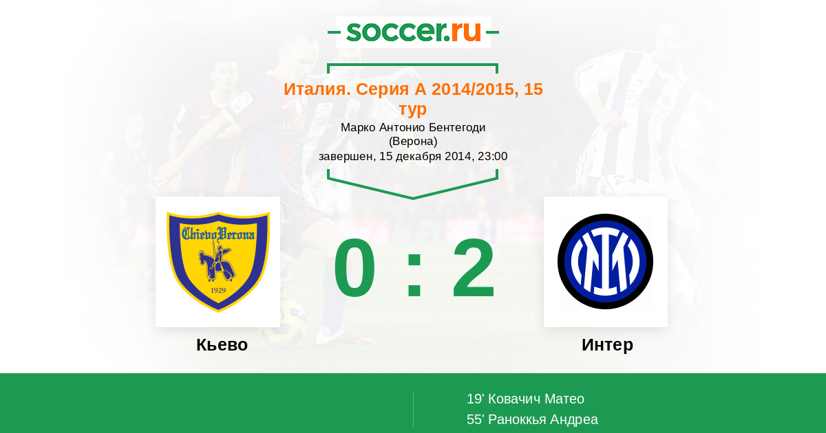 Протокол матча Кьево против Интер