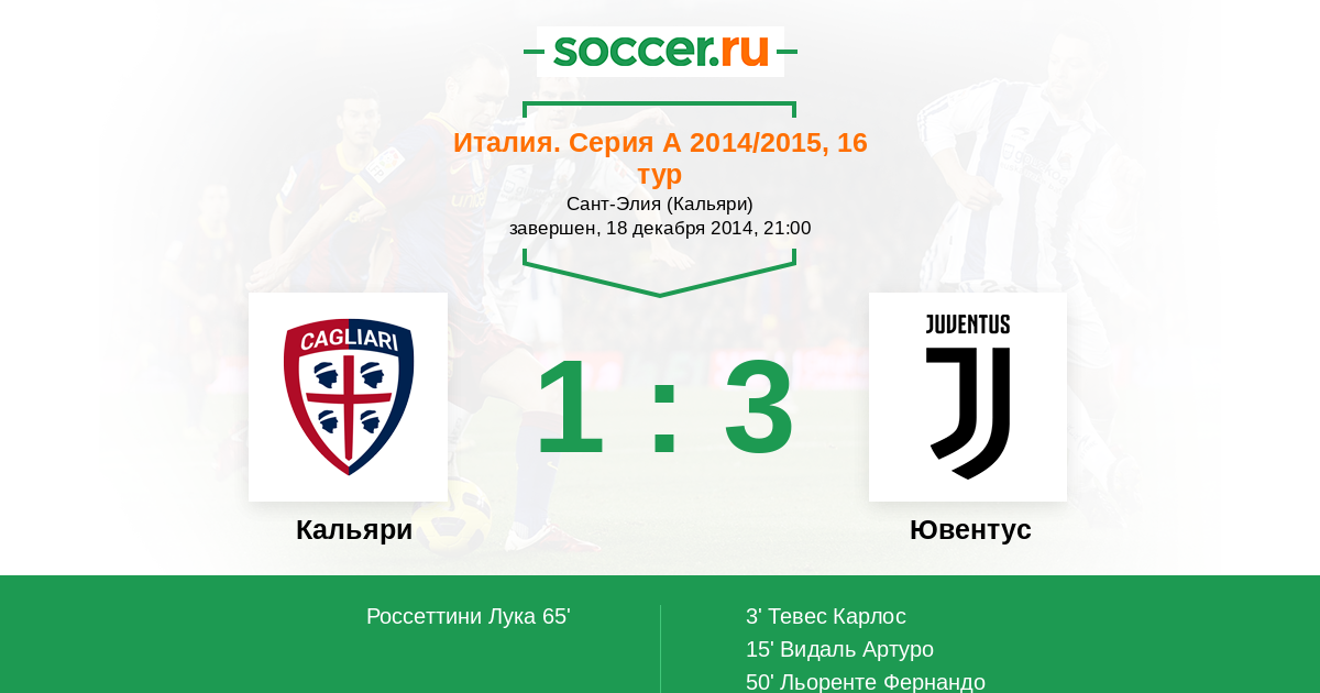 Протокол матча Кальяри против Ювентус