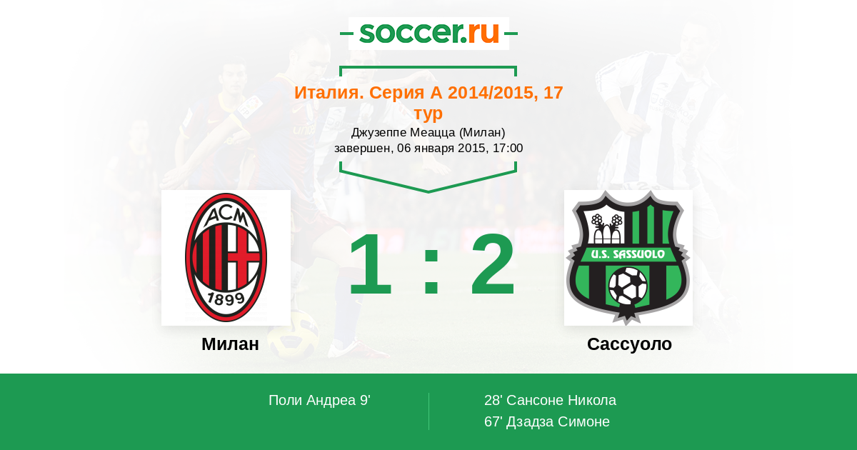 Протокол матча Милан против Сассуоло