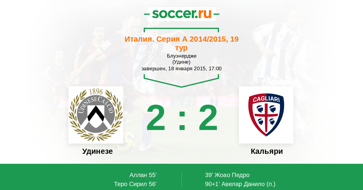 Протокол матча Удинезе против Кальяри