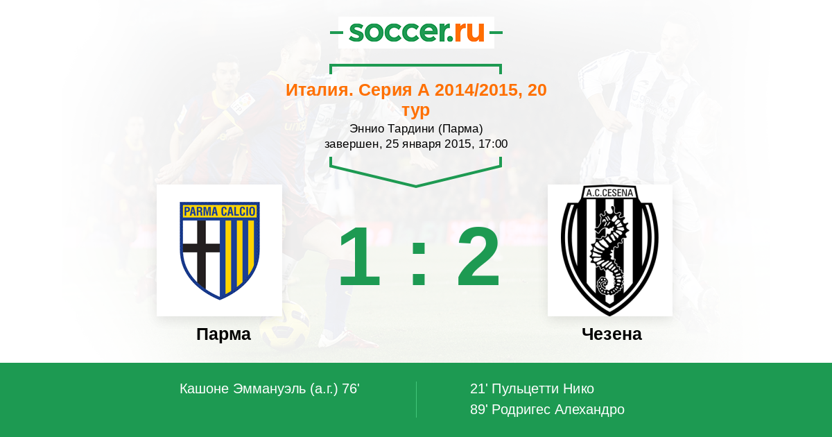 Протокол матча Парма против Чезена