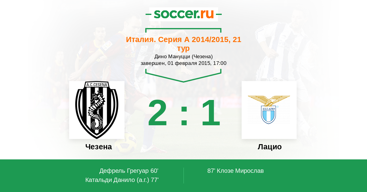 Протокол матча Чезена против Лацио