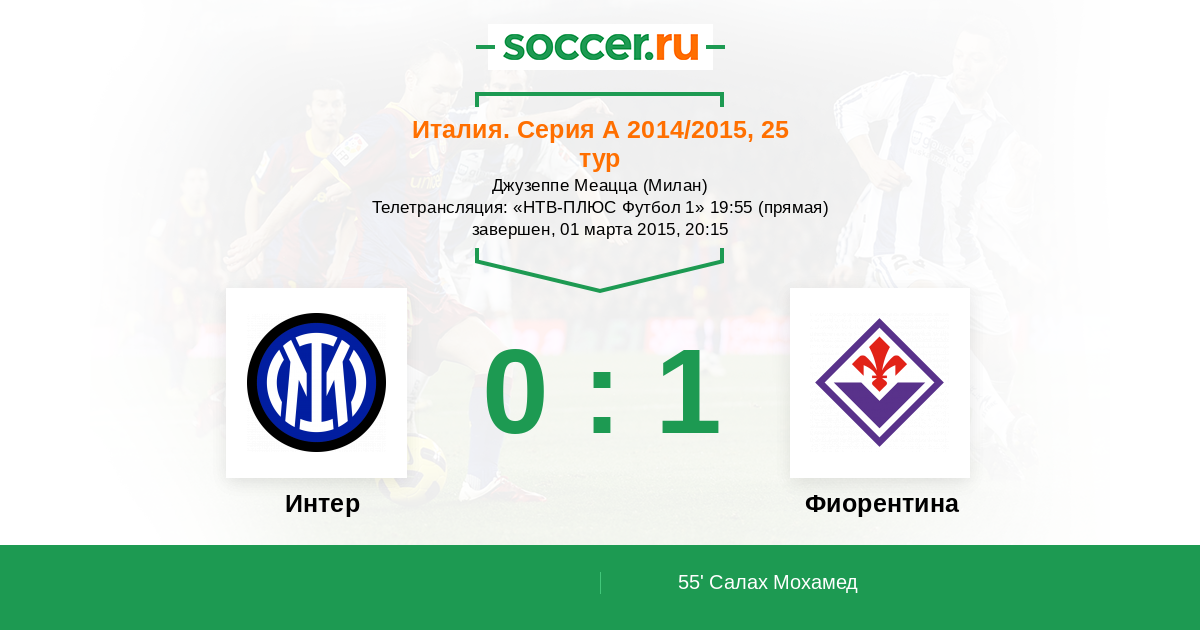 Протокол матча Интер против Фиорентина