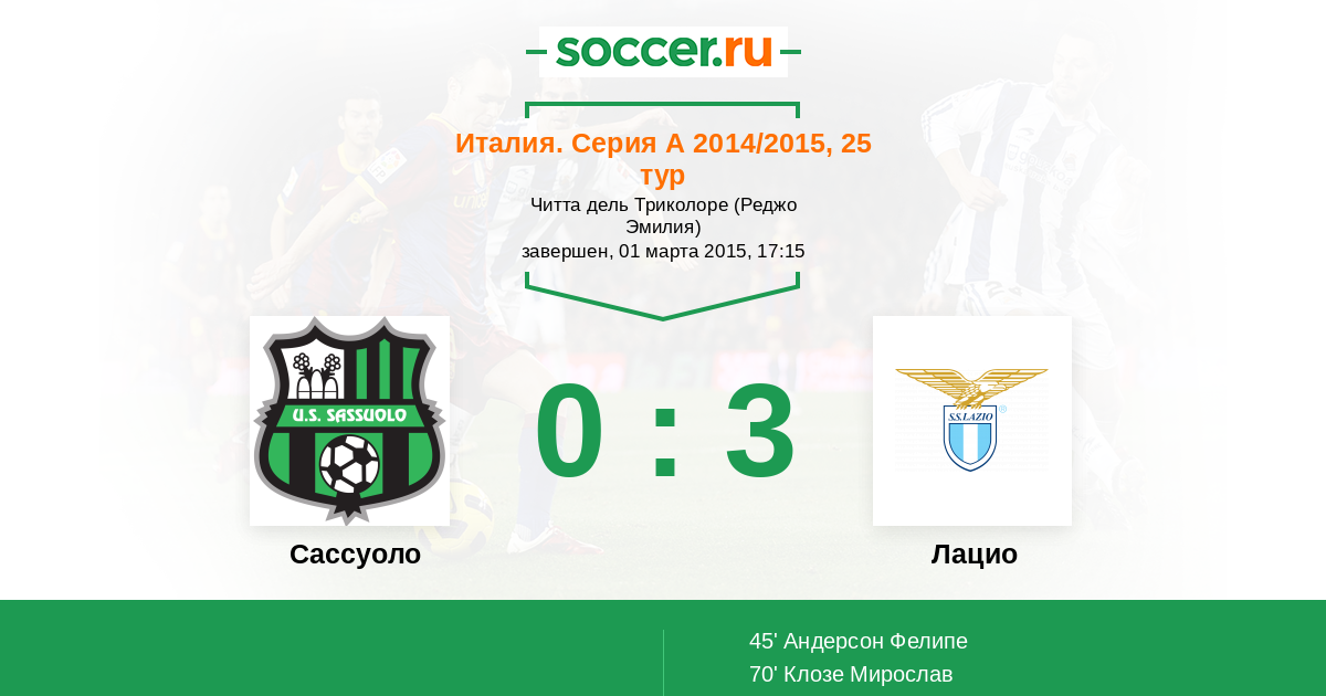 Протокол матча Сассуоло против Лацио
