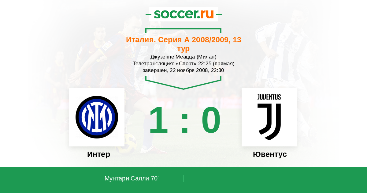Протокол матча Интер против Ювентус
