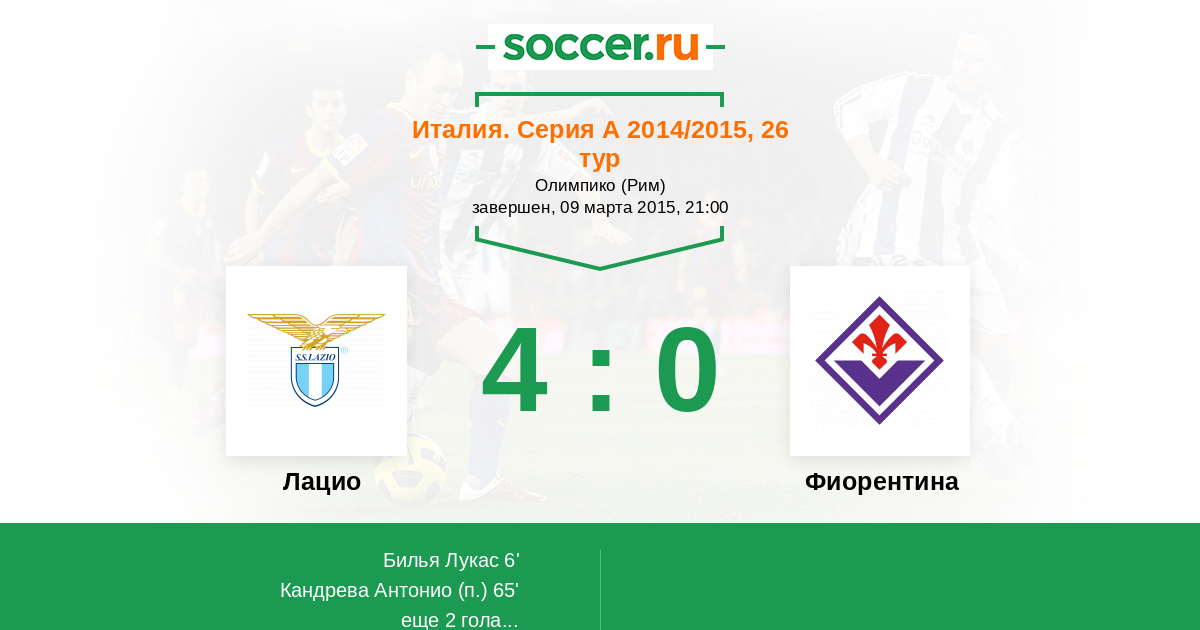 Протокол матча Лацио против Фиорентина