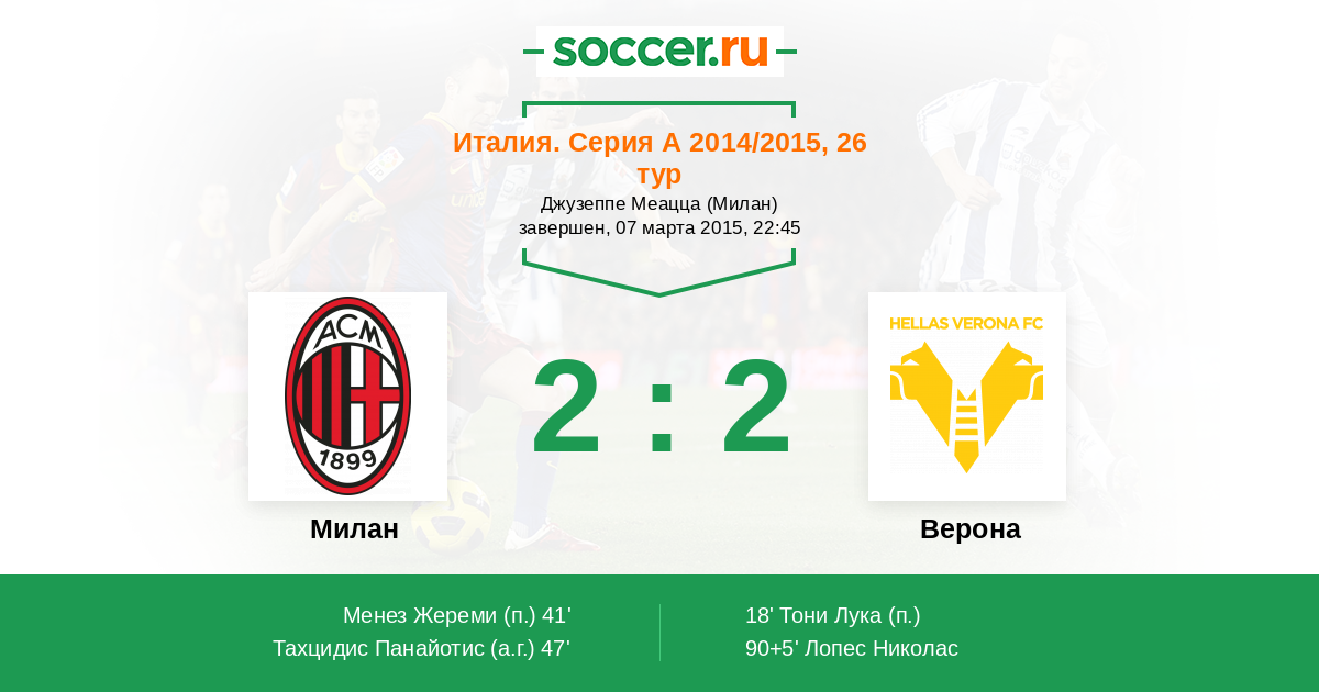 Протокол матча Милан против Верона