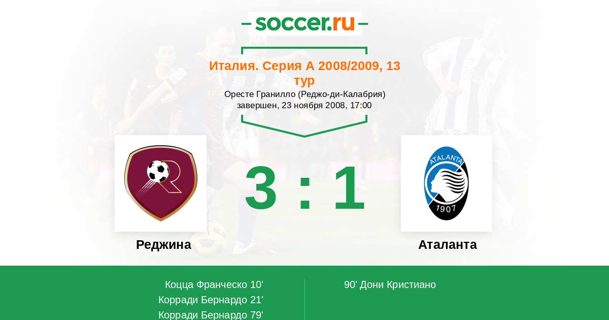Протокол матча Реджина против Аталанта