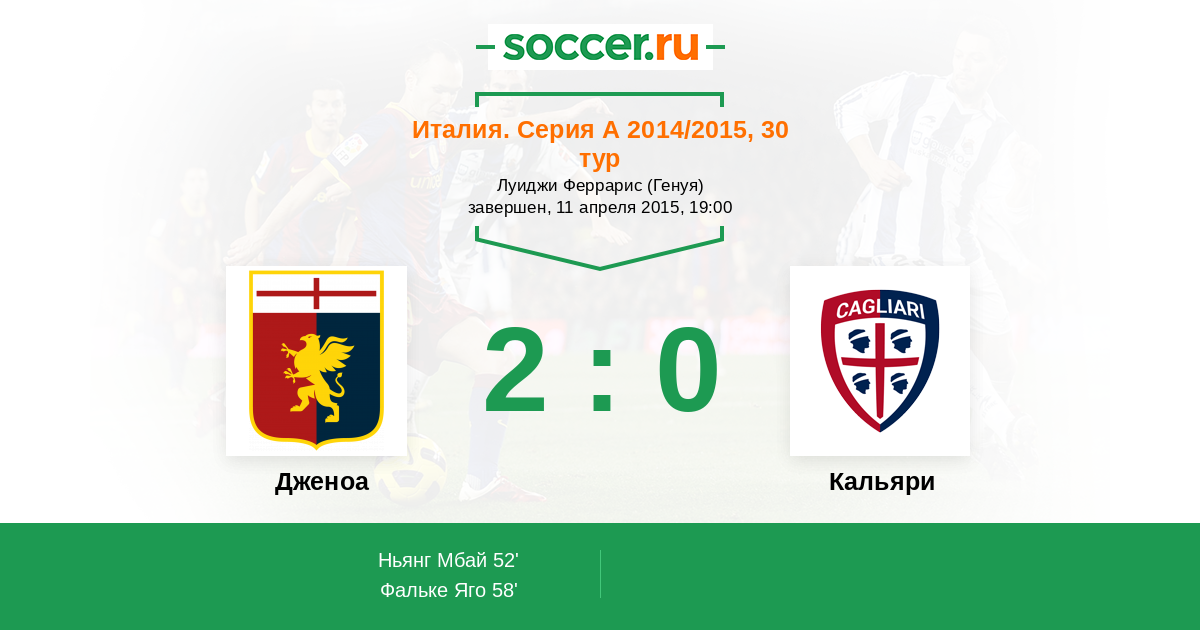 Протокол матча Дженоа против Кальяри