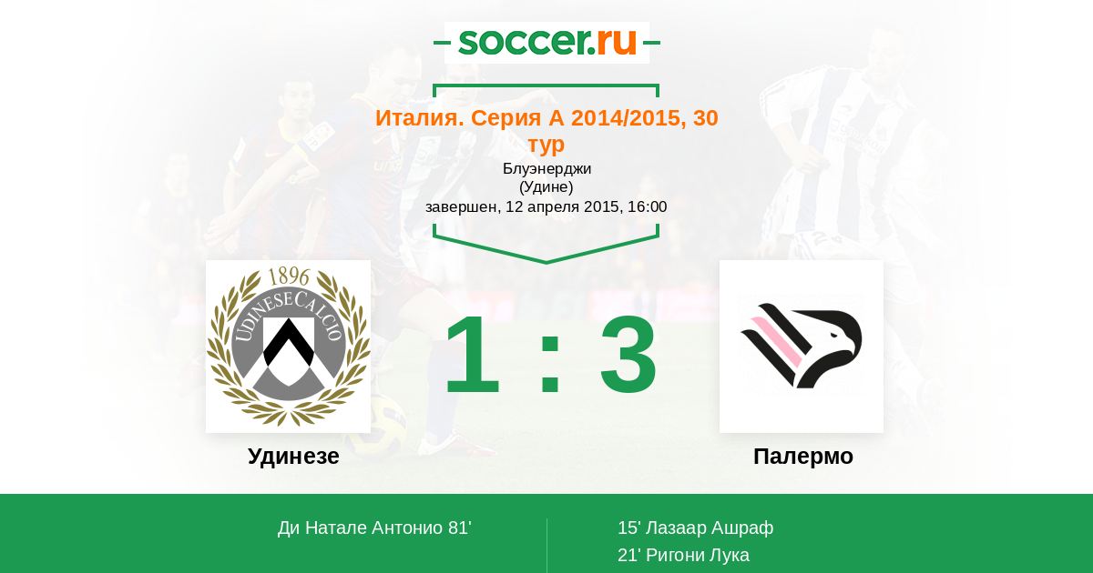 81' (1:3) Ди Натале Антонио (10) (Аллан (6))