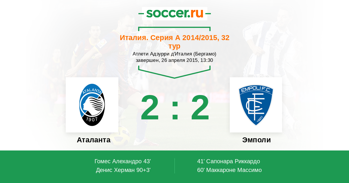 Протокол матча Аталанта против Эмполи