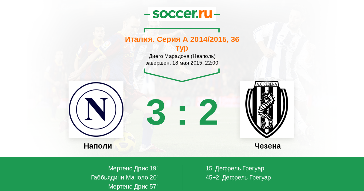 20' (2:1) Габбьядини Маноло (23) (Мертенс Дрис (14))