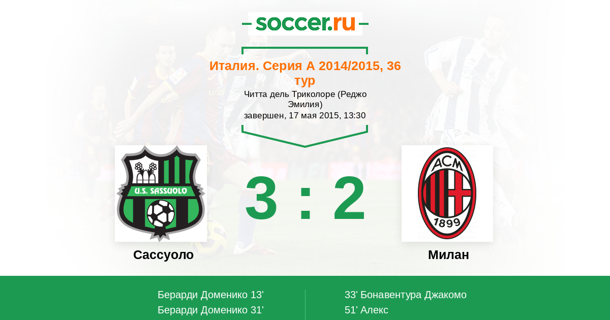 31' (2:0) Берарди Доменико (25) (Миссироли Симоне (7))