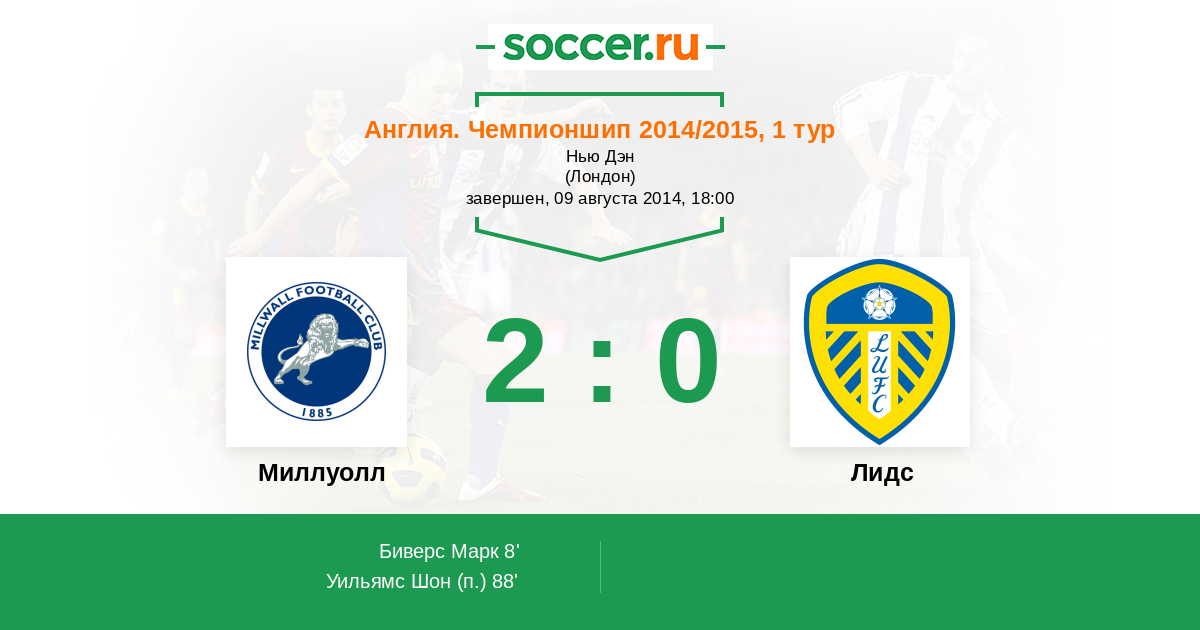Протокол матча Миллуолл против Лидс