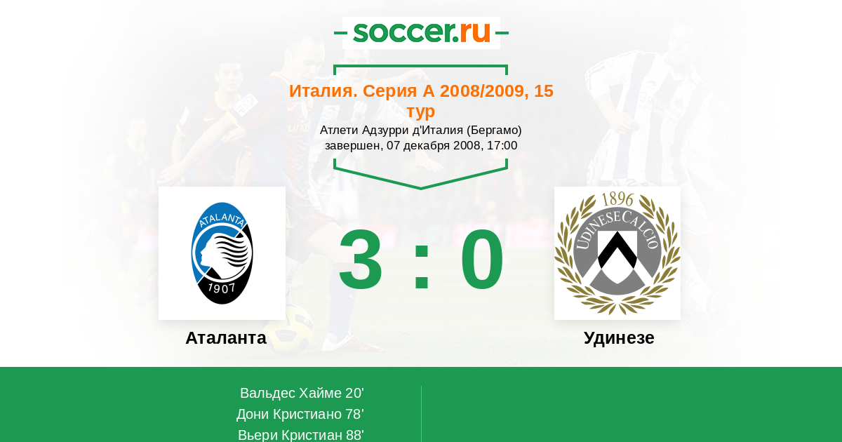 Протокол матча Аталанта против Удинезе