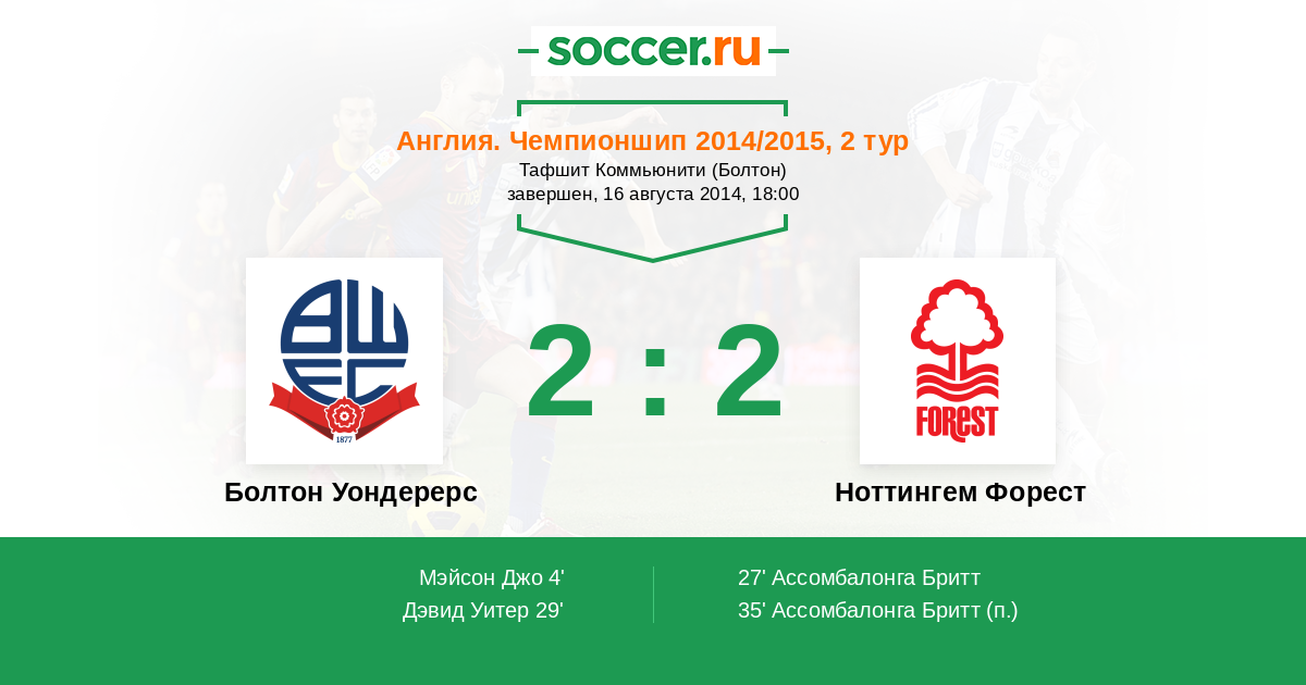 Протокол матча Болтон Уондерерс против Ноттингем Форест