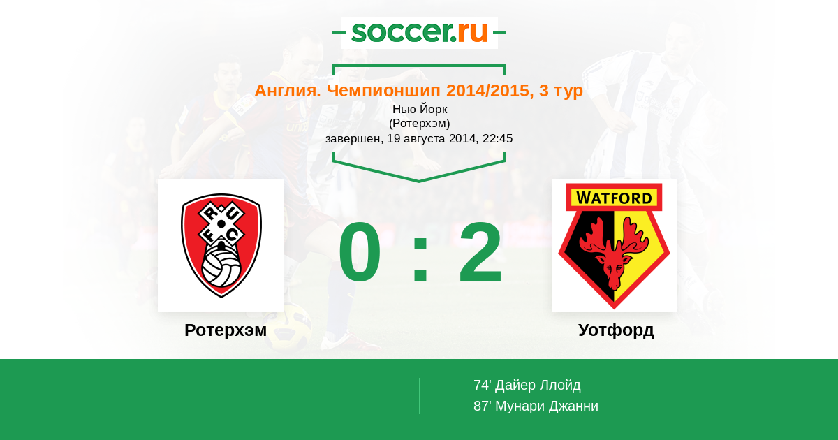 Протокол матча Ротерхэм против Уотфорд