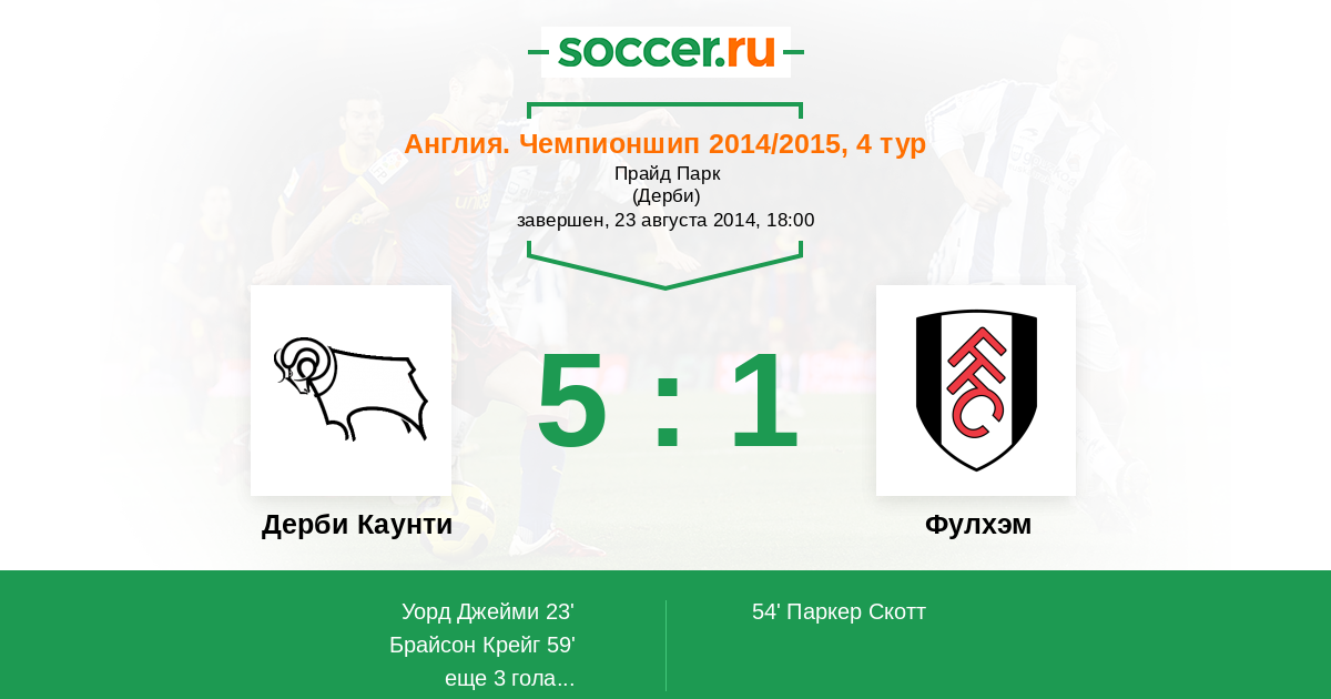 Протокол матча Дерби Каунти против Фулхэм