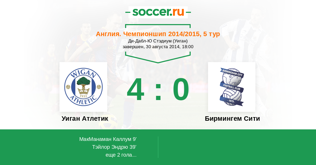 Протокол матча Уиган Атлетик против Бирмингем Сити