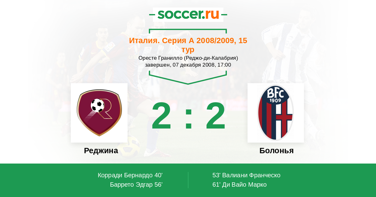 Протокол матча Реджина против Болонья