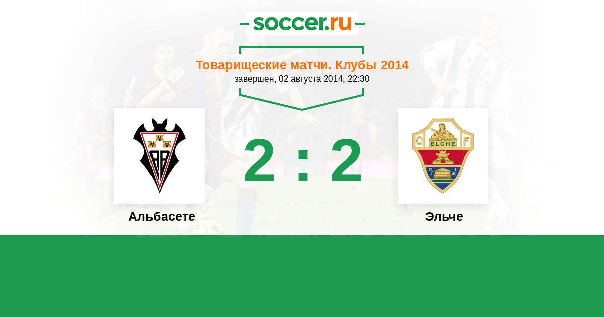 Товарищеские матчи. Клубы 04.08.2018 Эльче Логотип футбольный клуб Эльче 2:1 Логотип футбольный клуб Альбасете Альбасете