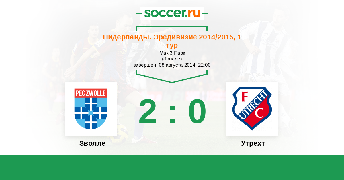 Нидерланды. Эредивизи 01.02.2015 Утрехт Логотип футбольный клуб Утрехт 0:2 Логотип футбольный клуб Зволле Зволле