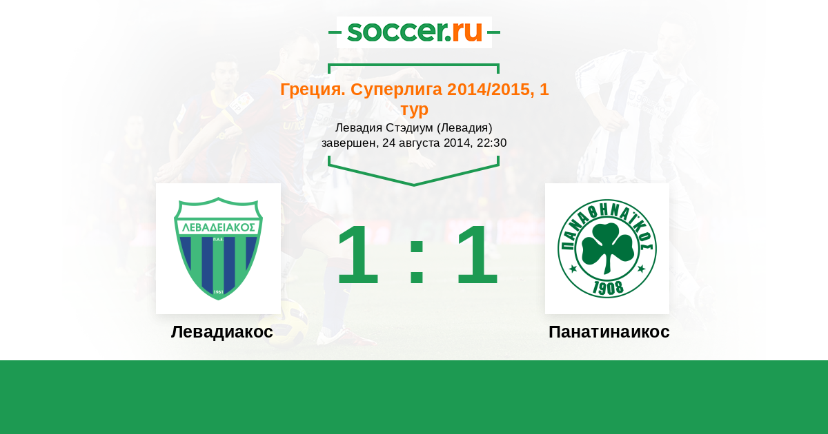 Греция. Суперлига 14.01.2015 Панатинаикос Логотип футбольный клуб Панатинаикос (Афины) 1:0 Логотип футбольный клуб Левадиакос (Левадия) Левадиакос