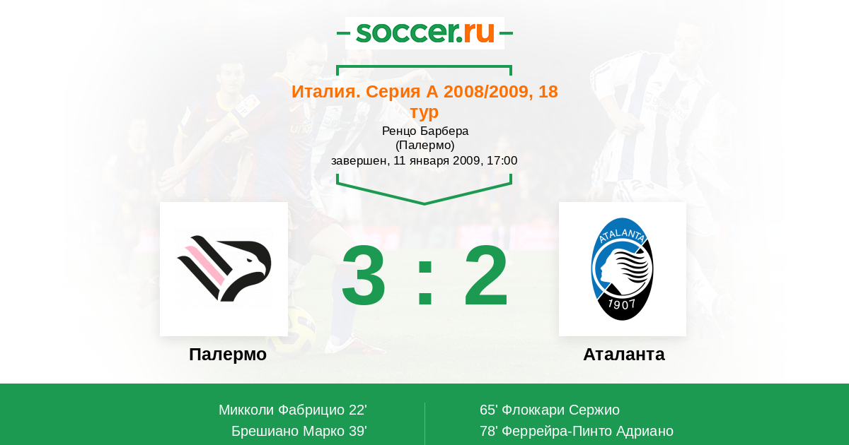 Протокол матча Палермо против Аталанта