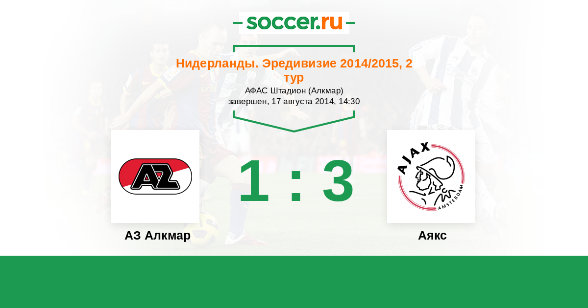Нидерланды. Эредивизи 23.02.2014 Аякс Логотип футбольный клуб Аякс (Амстердам) 4:0 Логотип футбольный клуб АЗ Алкмар АЗ Алкмар