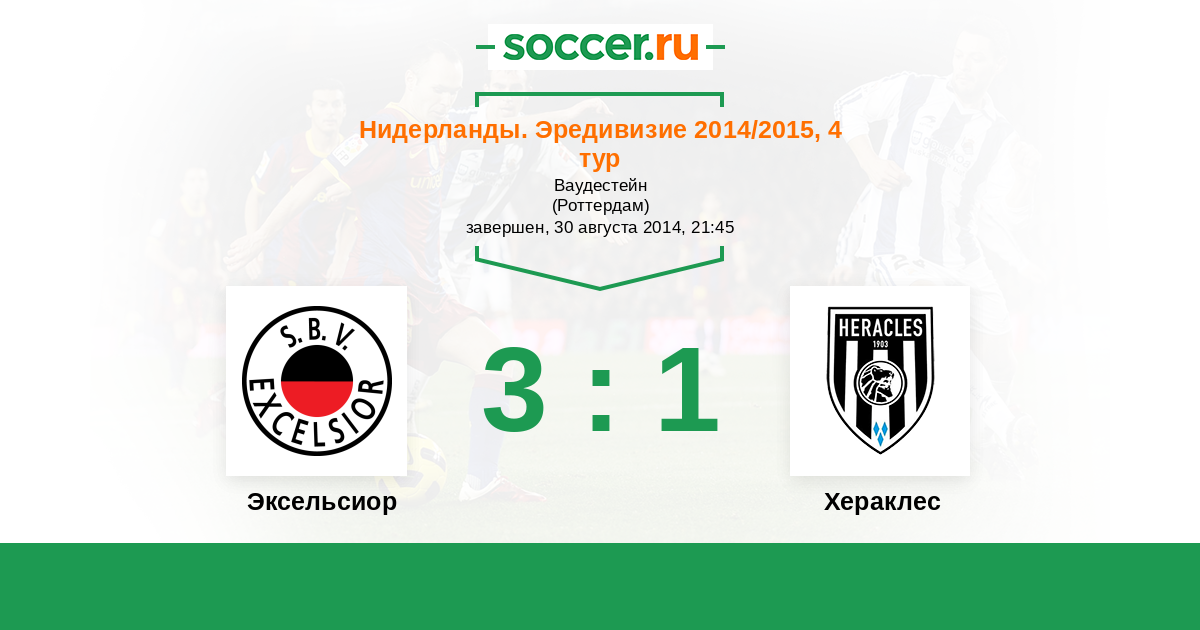 Нидерланды. Эредивизи 18.01.2015 Хераклес Логотип футбольный клуб Хераклес (Алмело) 0:3 Логотип футбольный клуб Эксельсиор (Роттердам) Эксельсиор