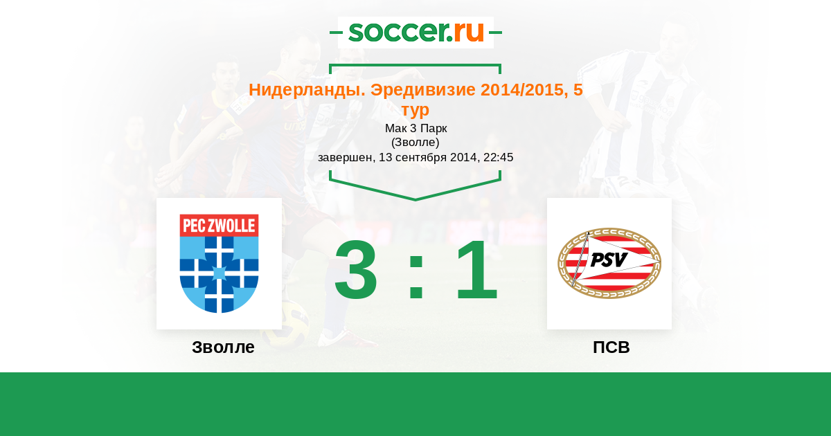 Нидерланды. Эредивизи 10.04.2015 ПСВ Логотип футбольный клуб ПСВ (Эйндховен) 3:1 Логотип футбольный клуб Зволле Зволле