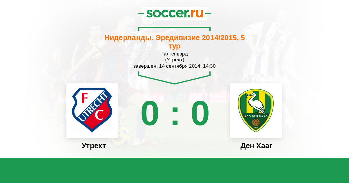 Нидерланды. Эредивизи 12.04.2015 Ден Хааг Логотип футбольный клуб Ден Хааг (Гаага) 2:0 Логотип футбольный клуб Утрехт Утрехт
