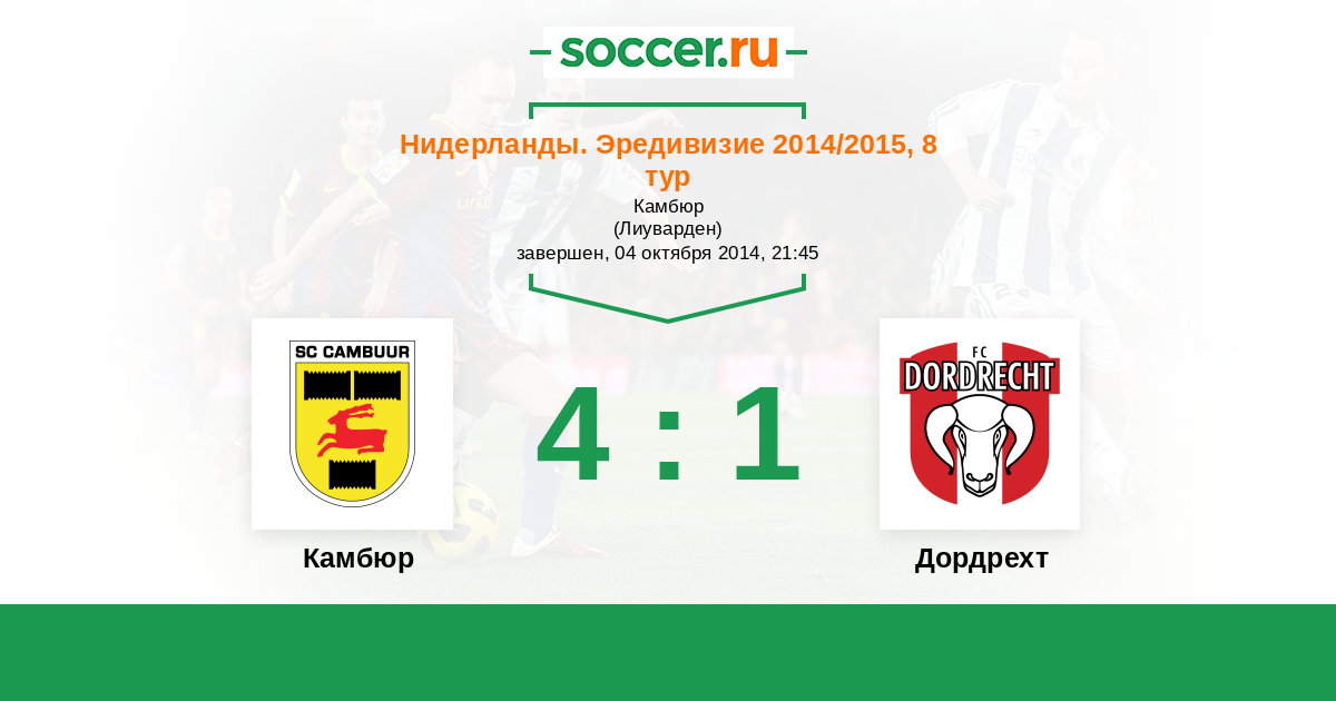 Нидерланды. Первый дивизион 05.10.2012 Камбюр Логотип футбольный клуб Камбюр (Лиуварден) 2:1 Логотип футбольный клуб Дордрехт Дордрехт