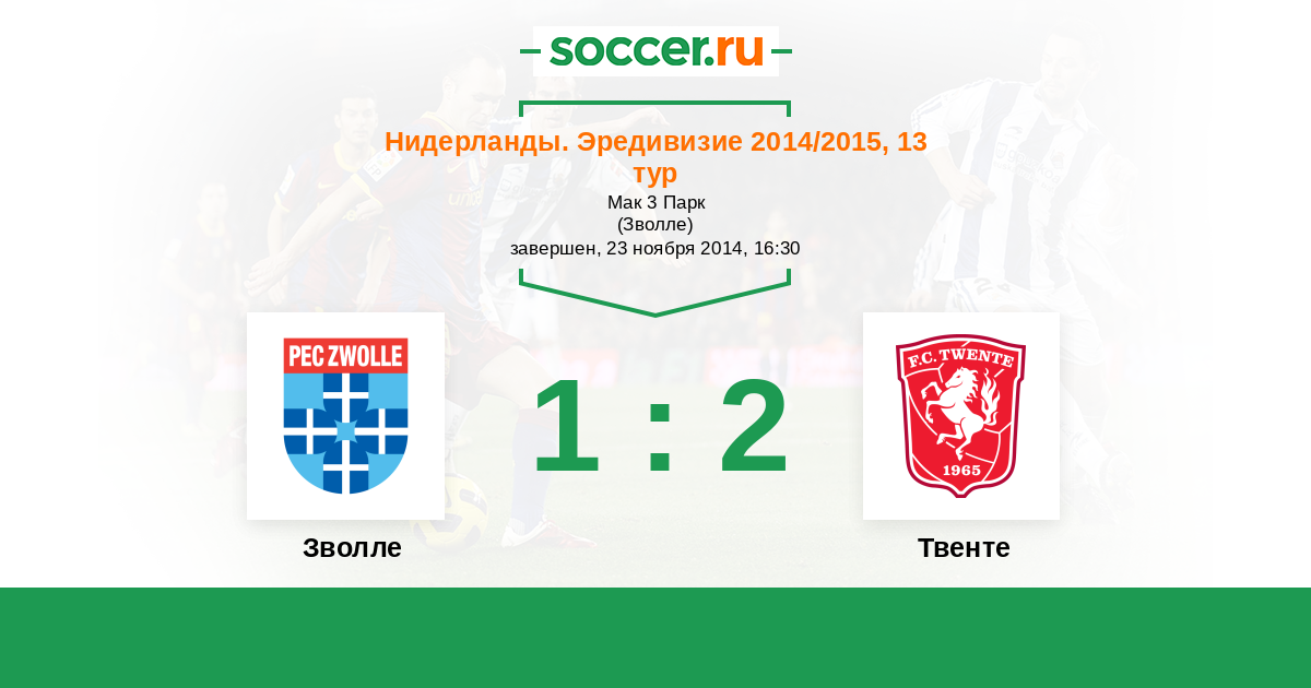 Нидерланды. Эредивизи 14.03.2015 Твенте Логотип футбольный клуб Твенте (Энсхеде) 2:0 Логотип футбольный клуб Зволле Зволле