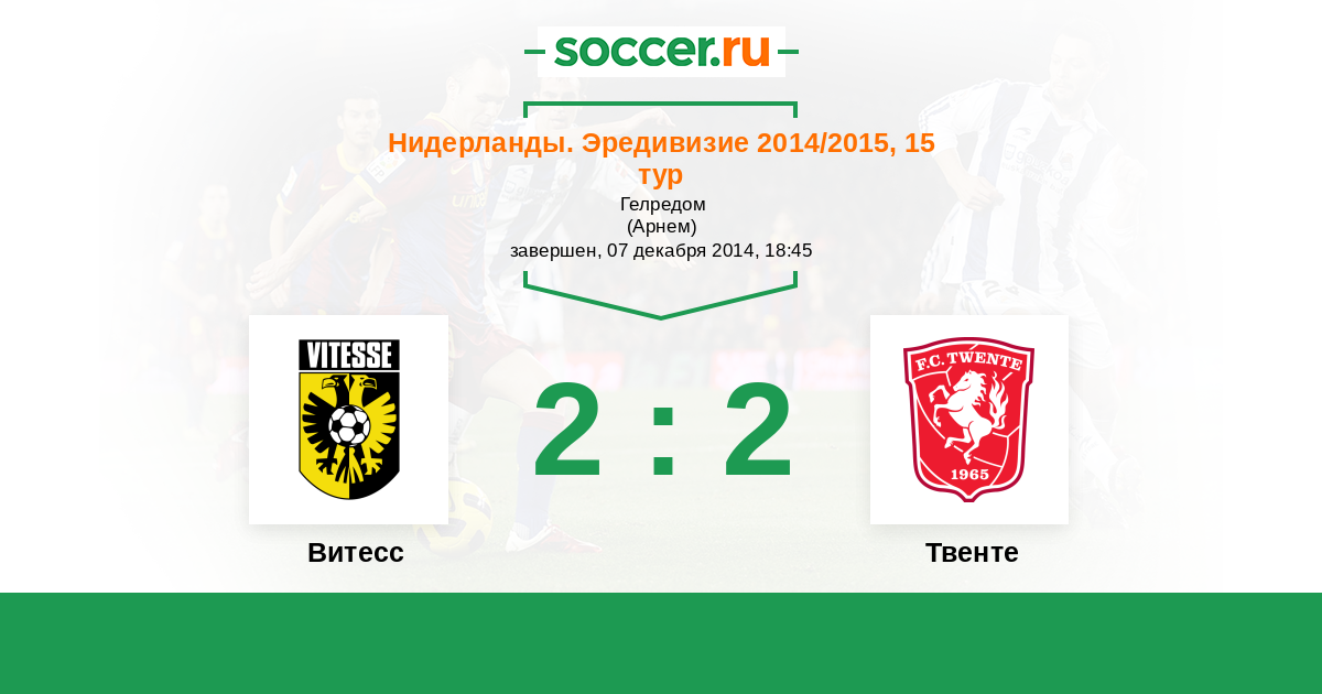 Нидерланды. Эредивизи 18.12.2015 Витесс Логотип футбольный клуб Витесс (Арнем) 5:1 Логотип футбольный клуб Твенте (Энсхеде) Твенте