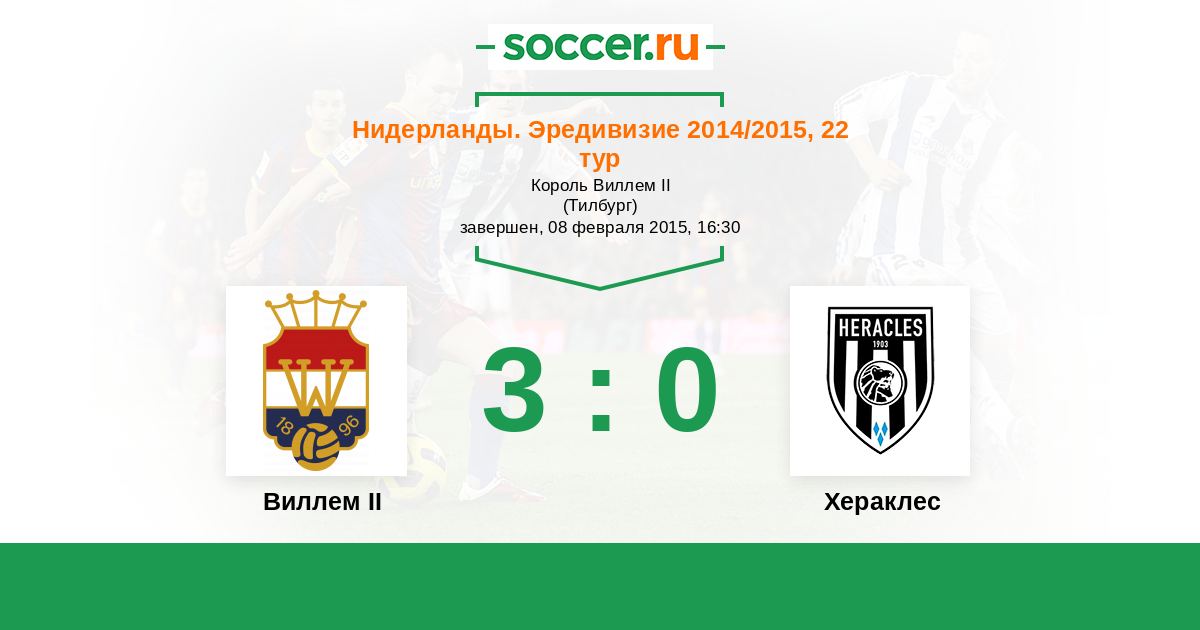Нидерланды. Эредивизи 25.10.2014 Хераклес Логотип футбольный клуб Хераклес (Алмело) 1:3 Логотип футбольный клуб Виллем II (Тилбург) Виллем II