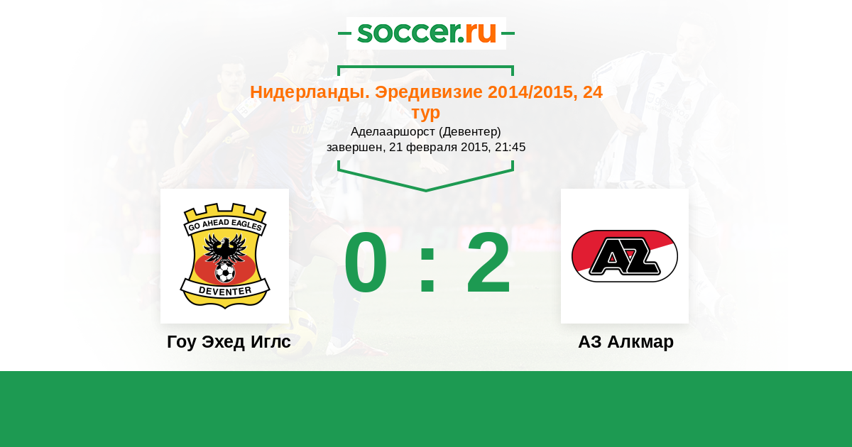 Нидерланды. Эредивизи 08.02.2014 Гоу Эхед Иглс Логотип футбольный клуб Гоу Эхед Иглс (Девентер) 2:1 Логотип футбольный клуб АЗ Алкмар АЗ Алкмар