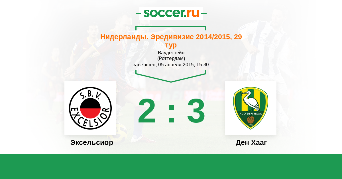 Нидерланды. Эредивизи 14.02.2016 Эксельсиор Логотип футбольный клуб Эксельсиор (Роттердам) 2:4 Логотип футбольный клуб Ден Хааг (Гаага) Ден Хааг