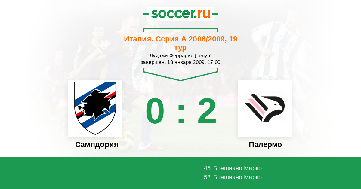 Протокол матча Сампдория против Палермо