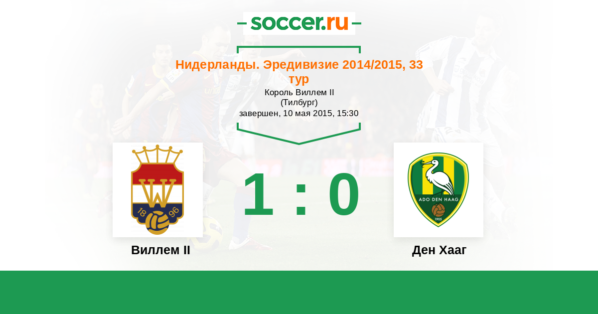 Нидерланды. Эредивизи 12.12.2015 Ден Хааг Логотип футбольный клуб Ден Хааг (Гаага) 1:1 Логотип футбольный клуб Виллем II (Тилбург) Виллем II