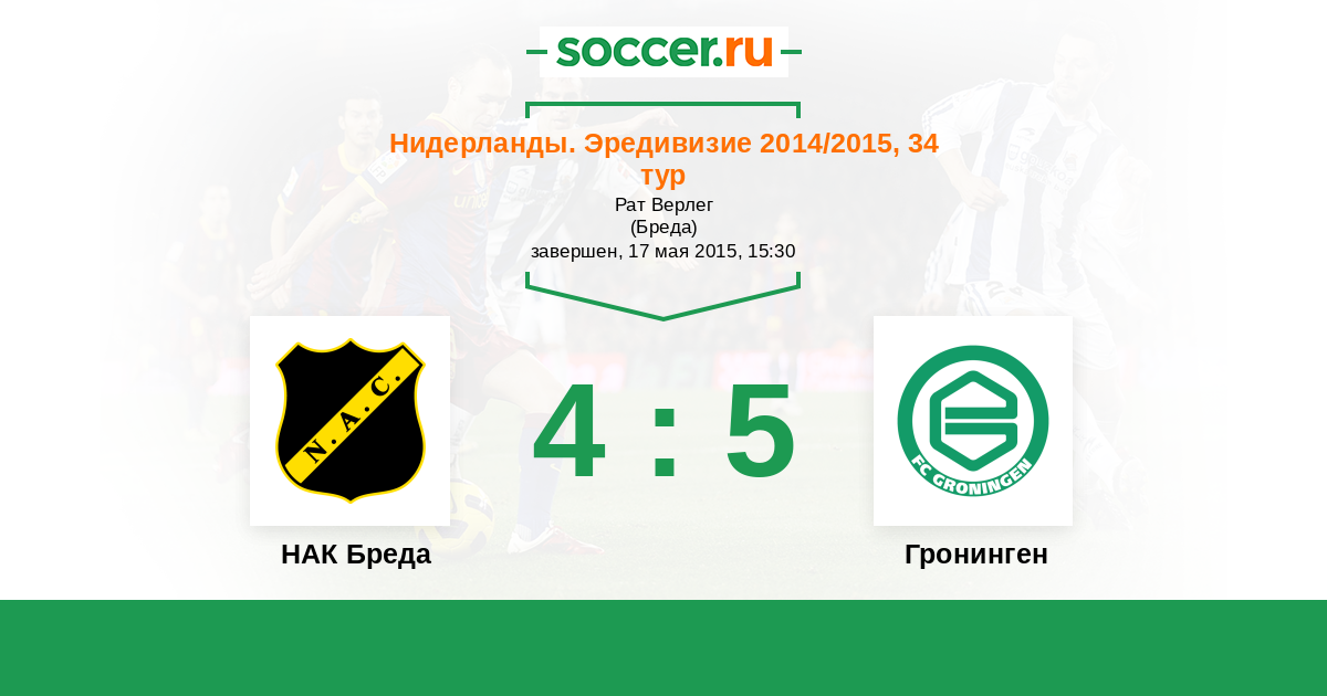 Нидерланды. Эредивизи 02.11.2014 Гронинген Логотип футбольный клуб Гронинген 1:0 Логотип футбольный клуб НАК Бреда НАК Бреда