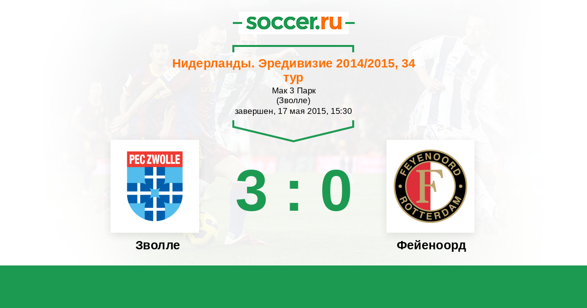 Нидерланды. Эредивизи 01.11.2014 Фейеноорд Логотип футбольный клуб Фейеноорд (Роттердам) 2:0 Логотип футбольный клуб Зволле Зволле