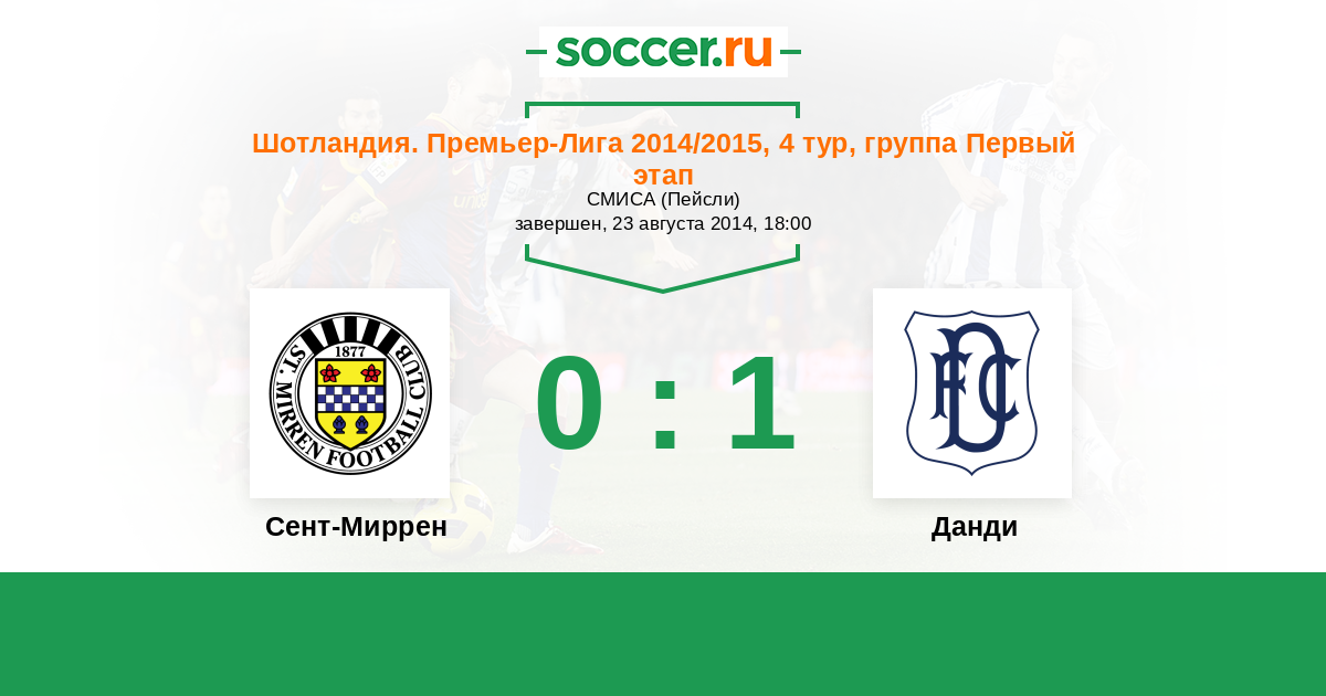 Шотландия. Премьер-Лига 24.01.2015 Сент-Миррен Логотип футбольный клуб Сент-Миррен (Пейсли) 1:2 Логотип футбольный клуб Данди Данди