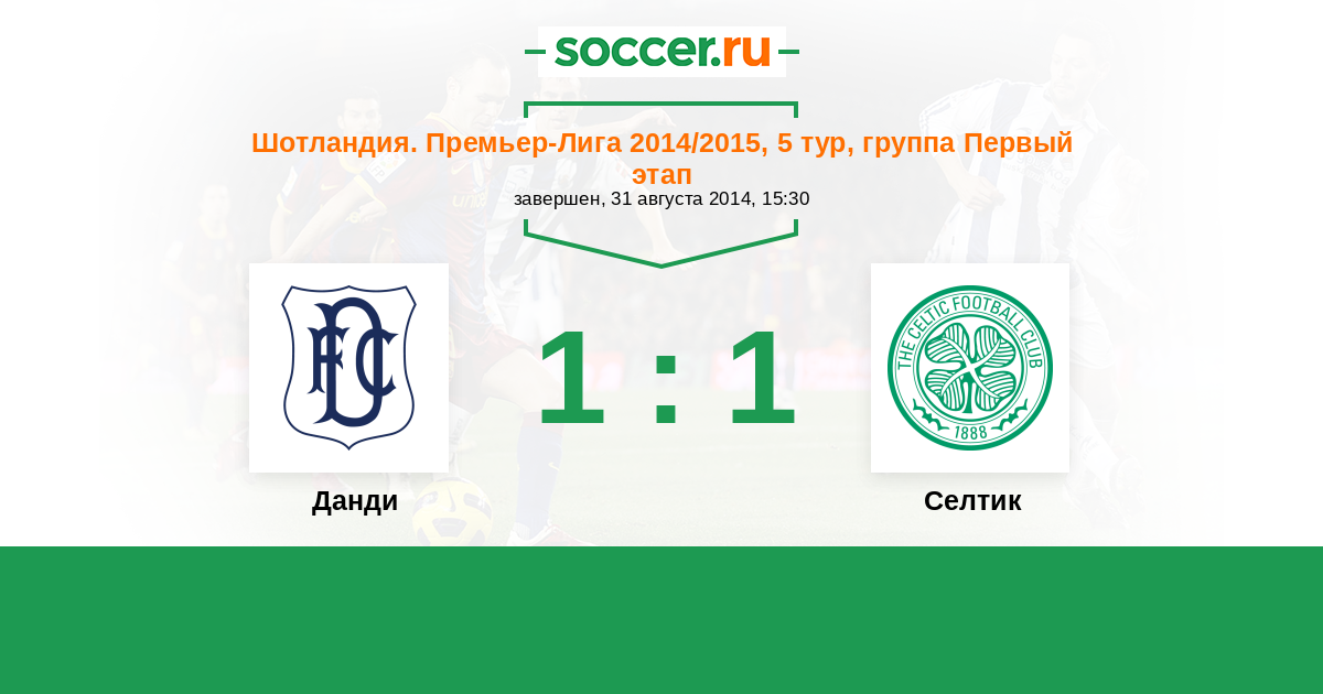 Шотландия. Премьер-Лига 20.09.2015 Селтик Логотип футбольный клуб Селтик (Глазго) 6:0 Логотип футбольный клуб Данди Данди