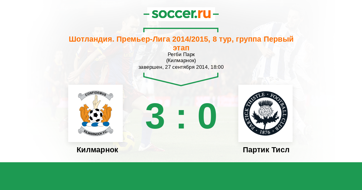Шотландия. Премьер-Лига 21.09.2013 Партик Тисл Логотип футбольный клуб Партик Тисл (Глазго) 1:1 Логотип футбольный клуб Килмарнок Килмарнок