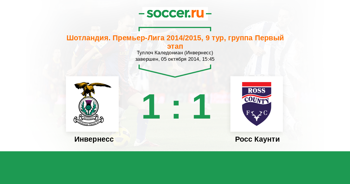 Шотландия. Премьер-Лига 03.10.2015 Росс Каунти Логотип футбольный клуб Росс Каунти (Дингволл) 1:2 Логотип футбольный клуб Инвернесс Инвернесс